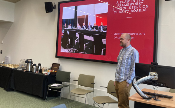 Dr John Picton from the University of Manchester examined the role of service users on charity boards and the legal ambiguities surrounding their participation. He explored the complexities of internal accountability and whether involving service users strengthens governance or introduces conflicts of interest. Case studies from organisations such as English Heritage, RSPB, and Kids Company were analysed, with a discussion centering on whether charities should be viewed primarily as public goods providers or as trust-based organisations representing the interests of their stakeholders.