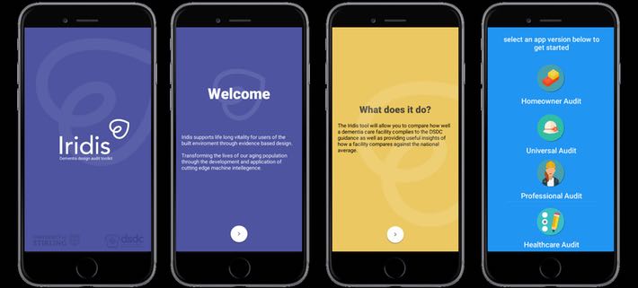 Later versions of IRIDIS will include a more detailed, paid-for service aimed at industry professionals in dementia care design and construction and healthcare professionals and providers. These apps will be able to assess illuminance and noise levels, including other more sophisticated features.