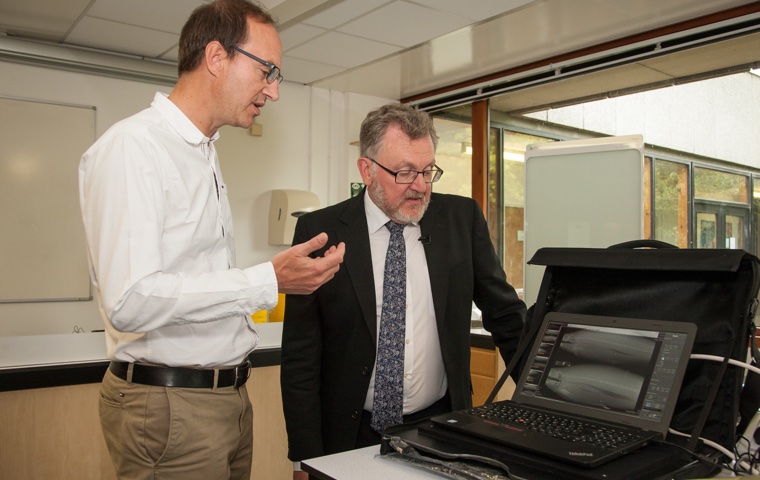 Professor Herve Migaud, of the Institute of Aquaculture, discusses the global impact of Stirling’s research with the Secretary of State for Scotland, David Mundell MP