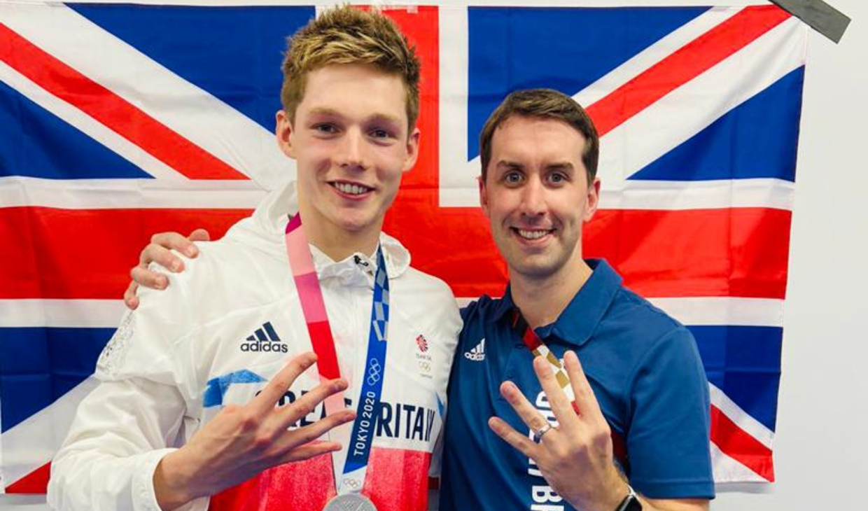 Duncan Scott pictured alongside Steven Tigg, Head Performance Swim Coach at the University of Stirling.